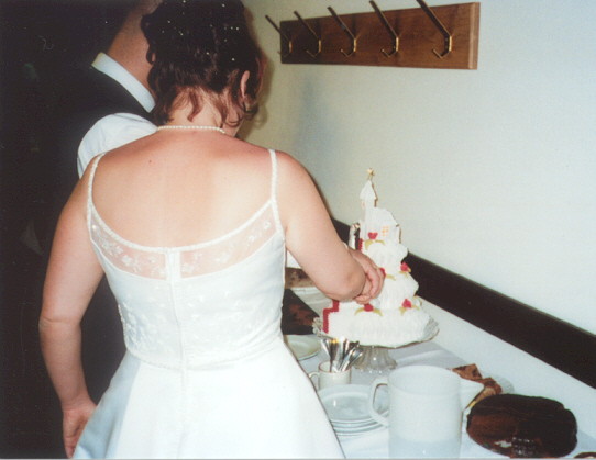 Beate und Harry schneiden die Hochzeitstorte an. Mmh lecker.